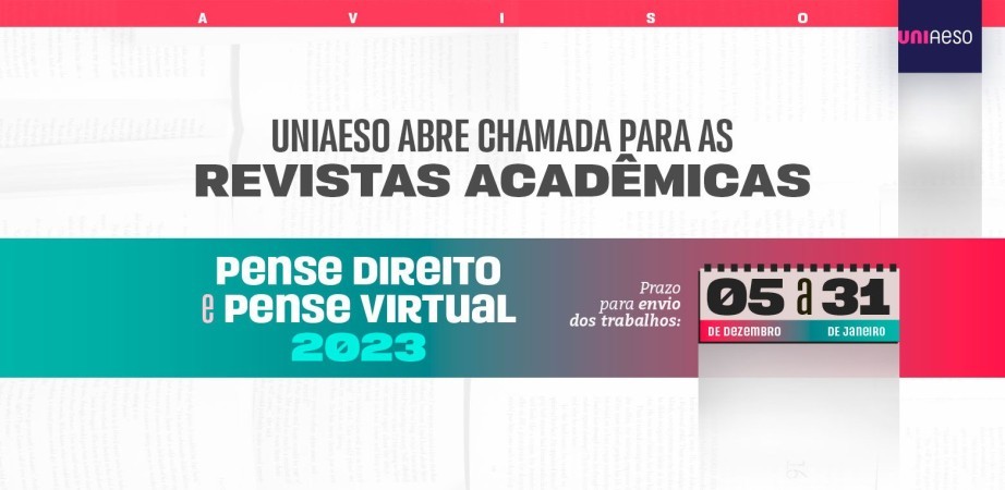 Abordando linhas de pesquisas variadas, as revistas Pense Virtual e a Pense Direito são publicações científicas multidisciplinares da UNIAESO que se consolidam como um espaço de ideias, proposições e debates sobre os mais diversos temas, com objetivo de visibilizar as produções de conhecimento nas atividades de ensino, pesquisa e extensão e incentivar a produção intelectual dos estudantes e professores.